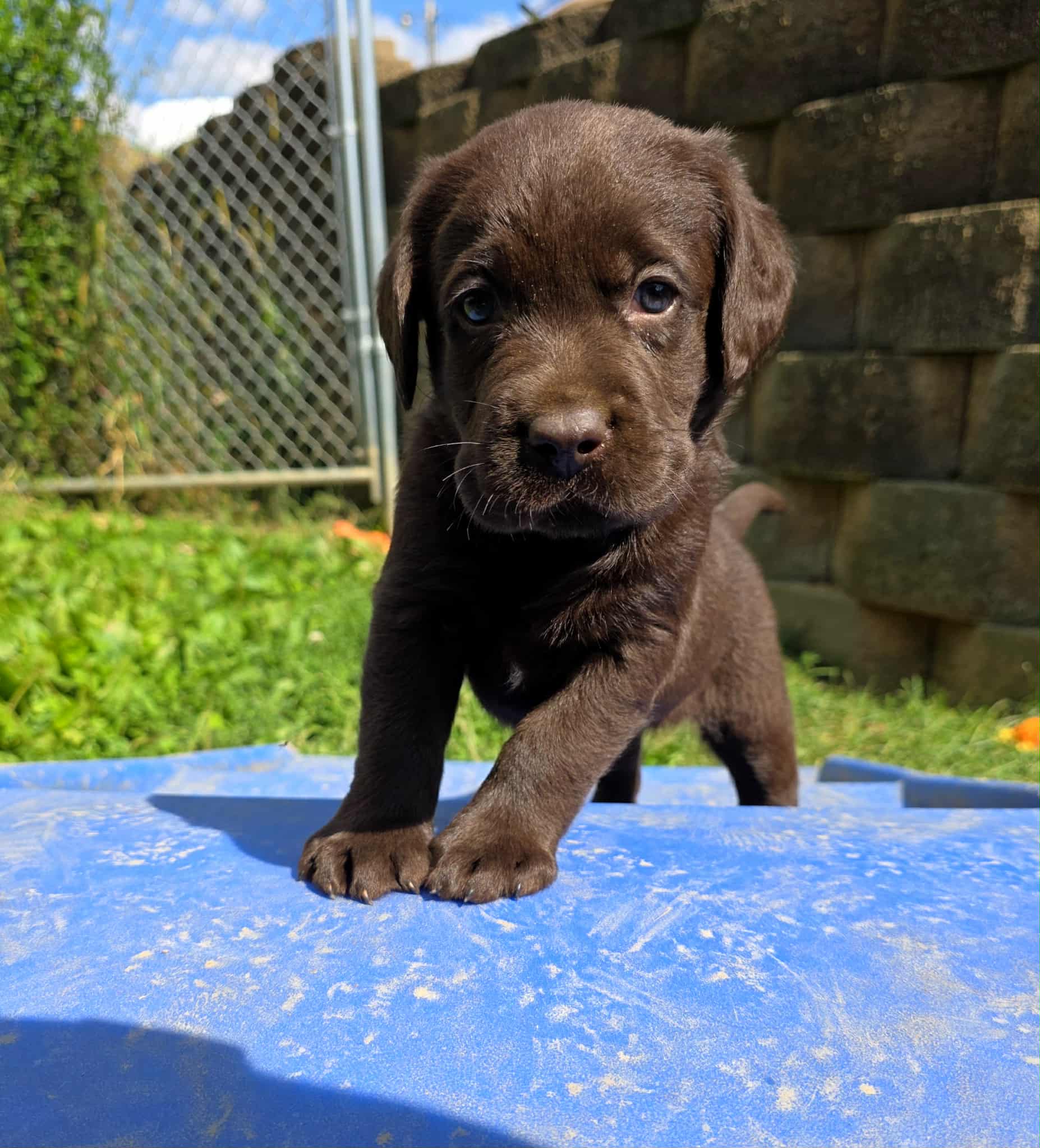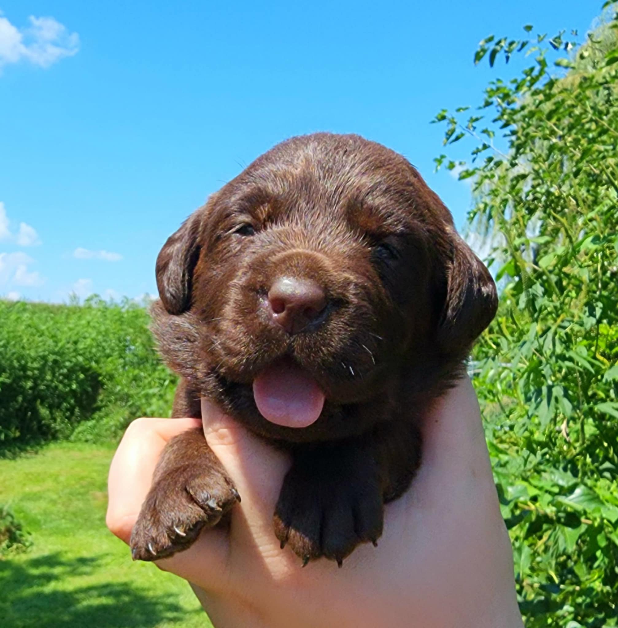 order to help us decide which puppy is the best match for you, Placement Puppies go to their new homes at about 8 weeks of age. They will be microchipped, have their first shots, have been wormed, and our vet will certify their health prior to them leaving. All puppy prices are for puppies going to approved pet homes on a spay/neuter contract (non breeding). Price includes 7.75% Illinois State Sales Tax as required by the state of Illinois. All our puppies, regardless of color or gender, are $2000. Contact us if you are interested in a show/breeding prospect, pricing varies on show/breeding puppies. Puppies come microchipped for their safety and our peace of mind! On unborn litters, we will accept deposits ($300) on up to 8 puppies (4 males and 4 females). Eight puppies is the average litter size for labradors, (although we have had 11 or 12!) The gestation period for a Labrador is about 60 days. On unborn litters, we can not be sure that there will be a litter, sometimes the breeding doesn't take, or something goes awry and the litter is re-absorbed. In the event that there is no litter, or when the puppies are born, if we do not have your selection, your deposit is returned, or can be used toward a future litter. Deposits are ONLY refunded if we don't have the gender/color you reserved. If we have the color/gender you requested and you've changed your mind about a puppy, the deposit is not refundable. To read about how we decide which puppy goes to which family, click here. Contact us to be certain there are reservations available, as things change on a daily basis.