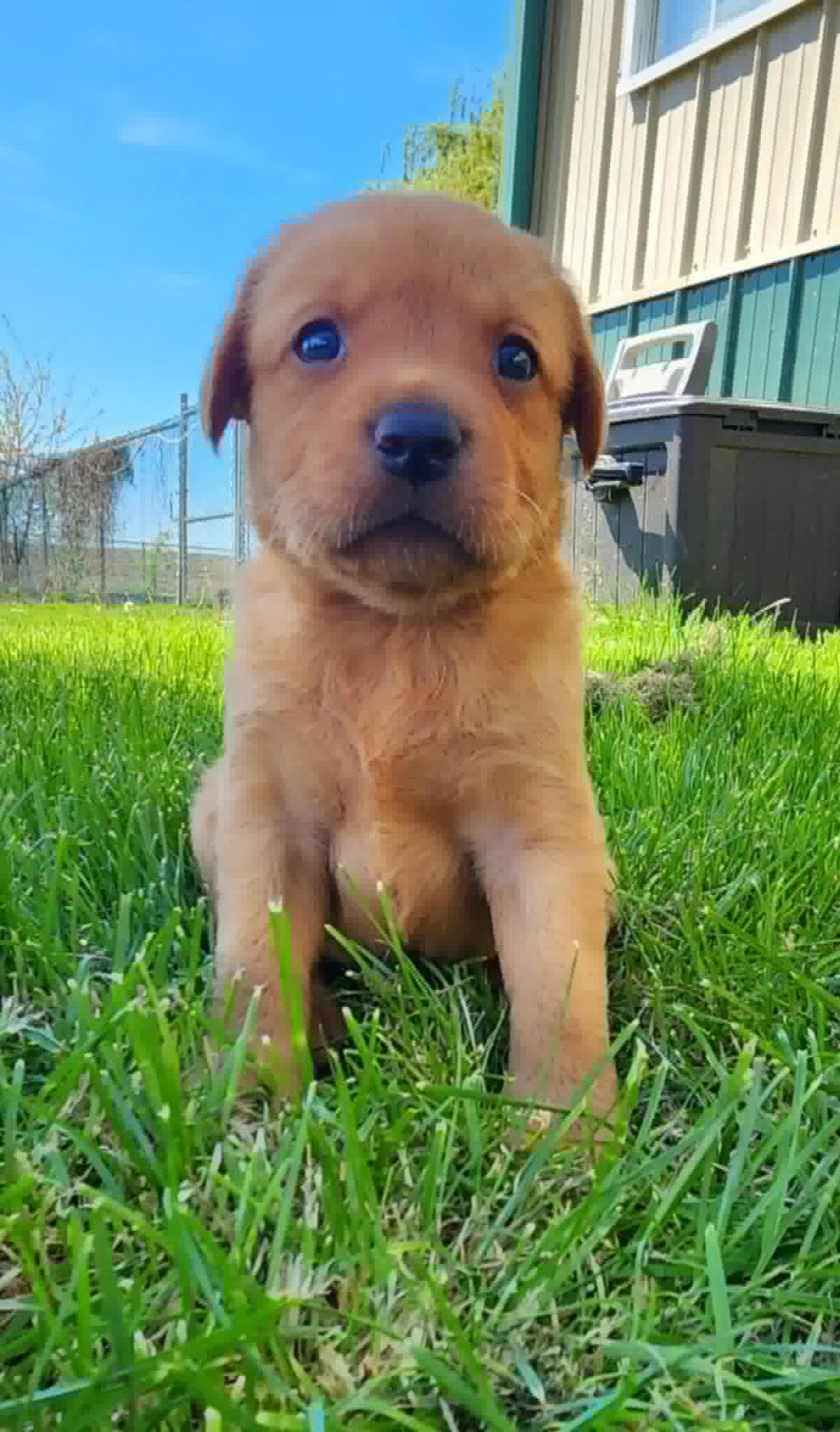 Ember is expecting a red and black litter with Captain, due early February, going home in April. Ember is the daughter of Salsa and Elmo, Salsa is the daughter of Siri and Harry. Ember is a calm, sweet natured girl, she loves to swim and thinks she must carry something around in her mouth at ALL times. She's been easy to train and is a terrific house and truck dog. Captain is as handsome and outgoing as they come, he's never met a person he didn't want to slobber on. He loves to retrieve, swim and has been very easy to train. Sometimes he's a little TOO smart! These two had a litter last year and they are getting rave reviews from their families. We might have a few reds available, depending on how many she has, and will probably have blacks available as well. Please just email me if you'd like to reserve a baby from this pairing. Previous babies from this pairing: