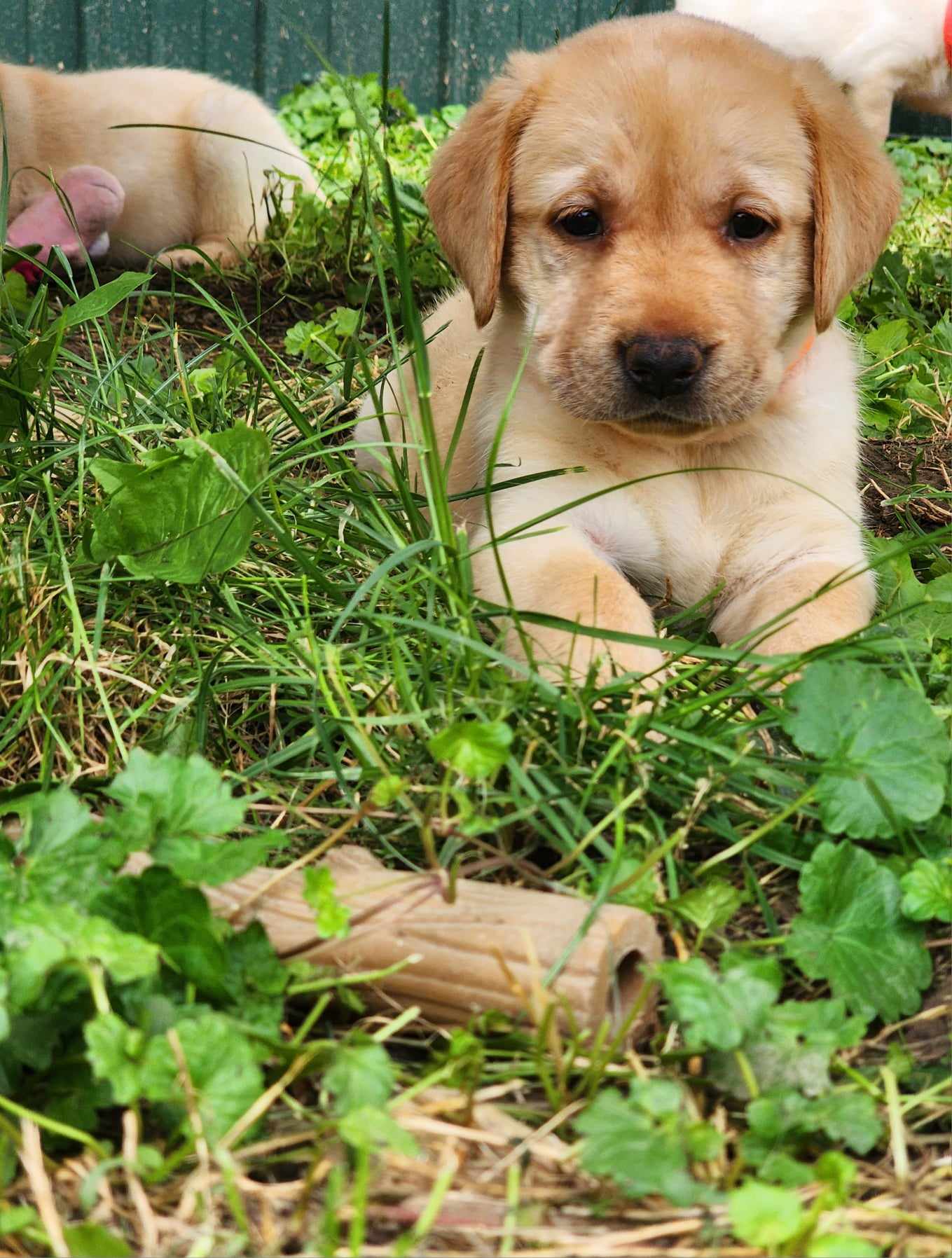 Rio (daughter of Cheyenne and Cruise) is expecting an all yellow litter with Kudzu. She is due the 3rd week of January, so babies will go home in late March. Rio is a gem, sweet, kind, has been easy to train and a joy to live with. She is smart, willing to try anything and loves to retrieve and swim. She has a definite off switch and is a mellow girl in the house. Kudzu is as good a fellow as we could ask for. He's as gorgeous as his Multi specialty Champion father, Limoncello, with the kind nature of his mother Bacca. These two had a litter in 2024, I kept two of them (River and Samba), they are wonderful, even as teenagers, they've been terrific, easy to train, great in the house, and they're gorgeous! I anticipate the same from this litter, sweet, smart babies with big blocky heads and stocky bodies. If you'd like to reserve a baby from this litter, please just email me! Previous babies from this pairing: